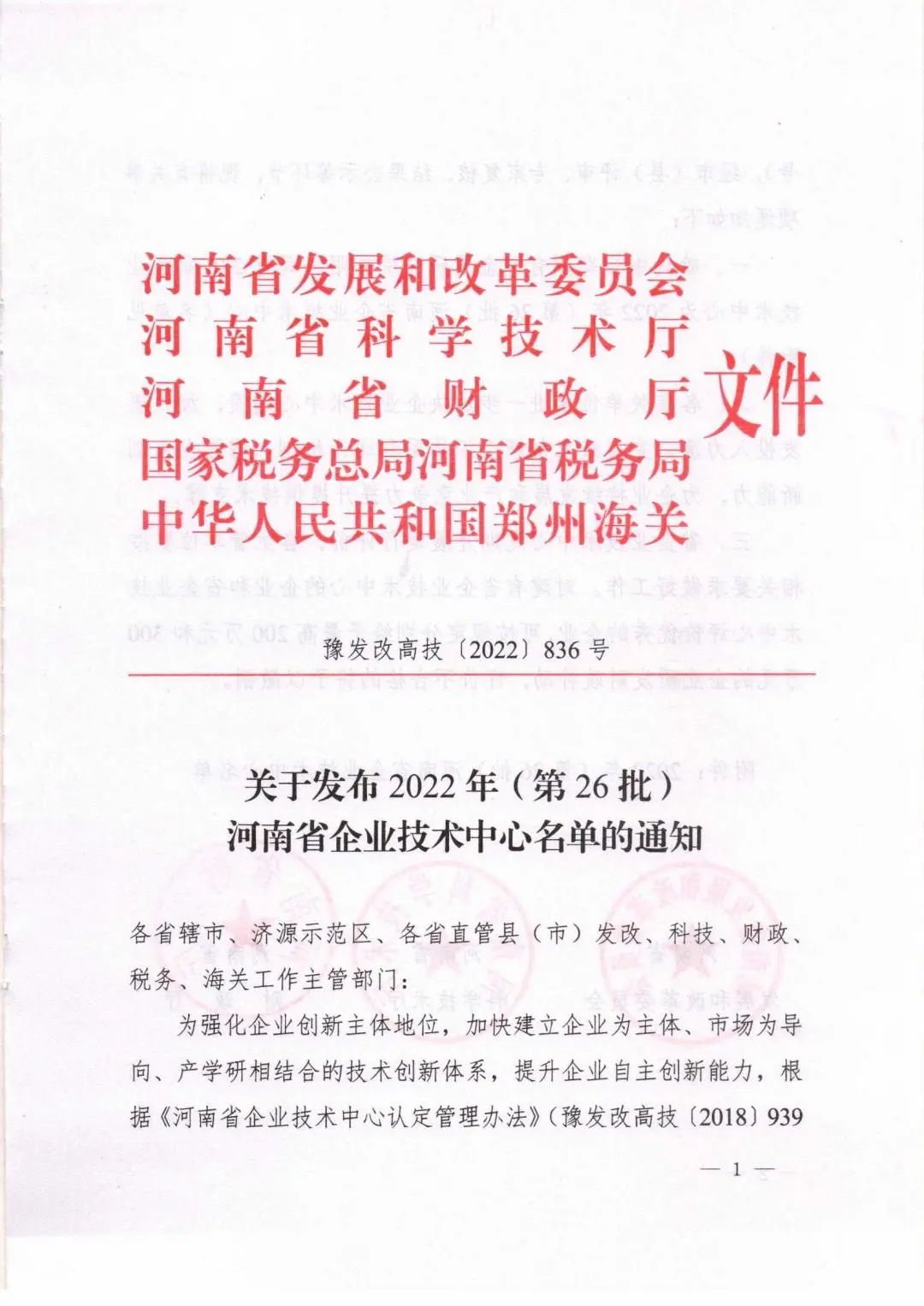 【查看詳情】近日,河南省發(fā)改委、科技廳等五個(gè)權(quán)威部門(mén)聯(lián)合發(fā)文,公司企業(yè)技術(shù)中心獲批為 河南省企業(yè)技術(shù)中心,是繼2021年度獲批信陽(yáng)市施工技術(shù)工程